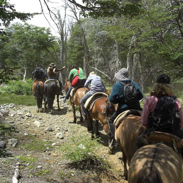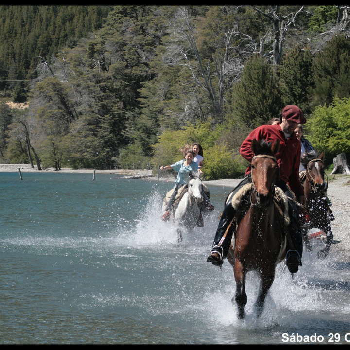 Previo desayuno iniciaremos la cabalgata guiada que dura aproximadamente 2 horas, recorriendo un bosque añoso de cipreses y coihues, rodeado de montañas y cruzado por arroyos. Luego transitaremos por una zona de pampa conociendo la flora y fauna autóctona del lugar, hasta llegar a un mirador donde podrán disfrutar de una excelente vista del paisaje. A partir de este punto emprenderemos el regreso por la costa del lago, por la ladera sur del Cerro Catedral, disfrutando de este hermoso escenario natural del Parque Nacional Nahuel Huapi. Al volver, los esperamos con un abundante almuerzo (opcional) en nuestro salón con vista al lago; empanada de carne, pollo, chorizo y carne con ensalada. Postre y una bebida chica por persona. Disponemos también de menú vegetariano, el cual debe ser reservado con antelación.