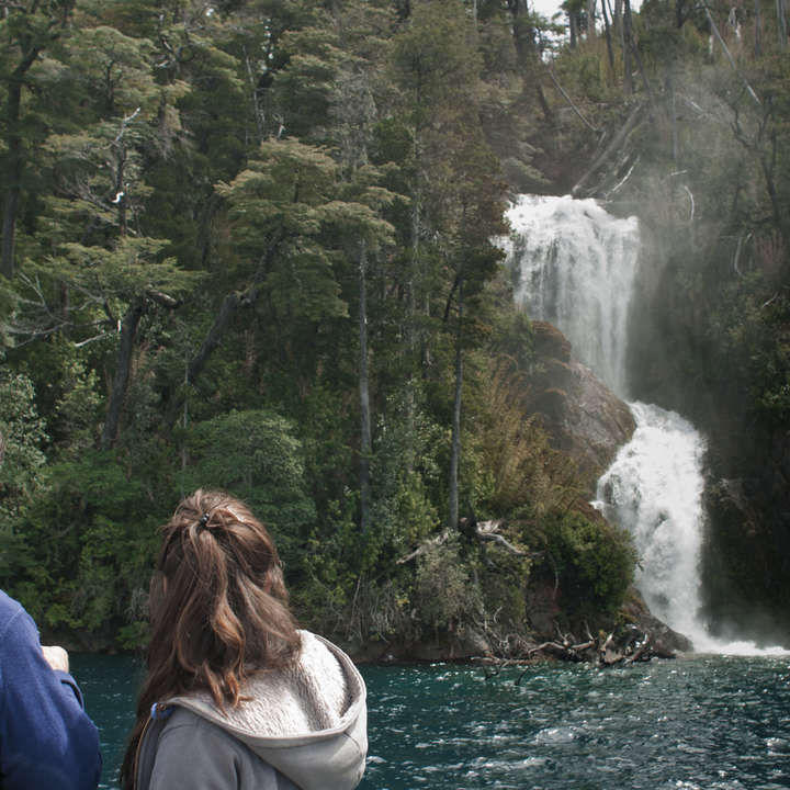 Desde allí se recorre en barco el Brazo Tristeza, visitando en el trayecto numerosas cascadas que especialmente en invierno y primavera, le suman atractivos al recorrido. Si el día está despejado, se pueden observar los glaciares de la cumbre del Cerro Tronador, el más alto del parque. Al llegar al final de este Brazo, se desciende a través de un muelle flotante, para recorrer un suave sendero de 1.5 kms, que conducirá a la cascada del Arroyo Frey, un tesoro escondido en medio de un frondoso bosque de coihues, alerces y otras especies típicas del Parque Nacional Nahuel Huapi. Tras un relajado momento al pie de la soberbia cascada, se emprende el regreso por el mismo sendero. Esta excursión es para toda la familia, sin límites de edad, en un confortable barco equipado con 8 mesas de 4 personas, que permite separar los diferentes grupos de viajeros.