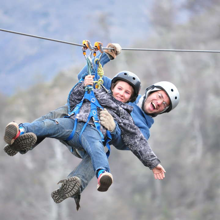 ZIPLINE: desde los 8 años con menos de 40 kilos vuelan con Instructor. Peso máximo 120 kilos.