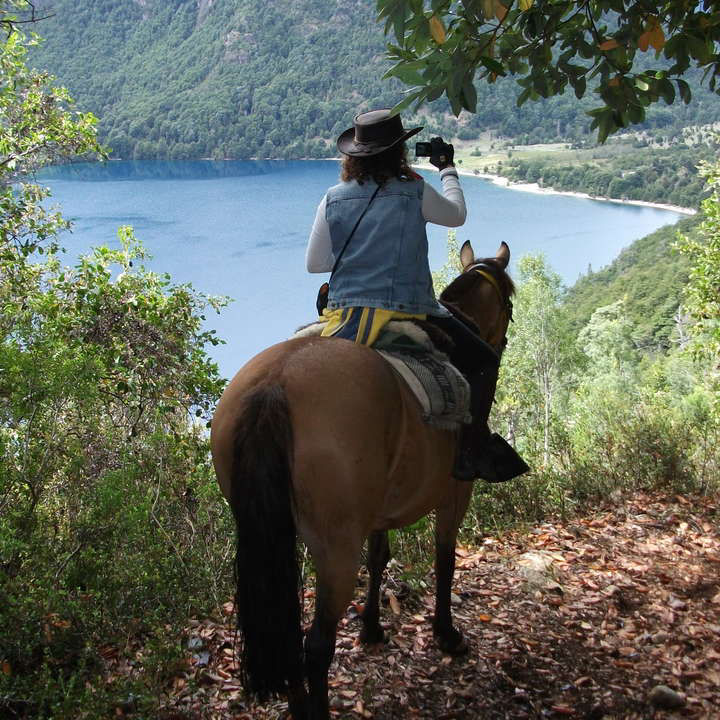 Previo desayuno iniciaremos la cabalgata guiada que dura aproximadamente 2 horas, recorriendo un bosque añoso de cipreses y coihues, rodeado de montañas y cruzado por arroyos. Luego transitaremos por una zona de pampa conociendo la flora y fauna autóctona del lugar, hasta llegar a un mirador donde podrán disfrutar de una excelente vista del paisaje. A partir de este punto emprenderemos el regreso por la costa del lago, por la ladera sur del Cerro Catedral, disfrutando de este hermoso escenario natural del Parque Nacional Nahuel Huapi. Al volver, los esperamos con un abundante almuerzo (opcional) en nuestro salón con vista al lago; empanada de carne, pollo, chorizo y carne con ensalada. Postre y una bebida chica por persona. Disponemos también de menú vegetariano, el cual debe ser reservado con antelación.
