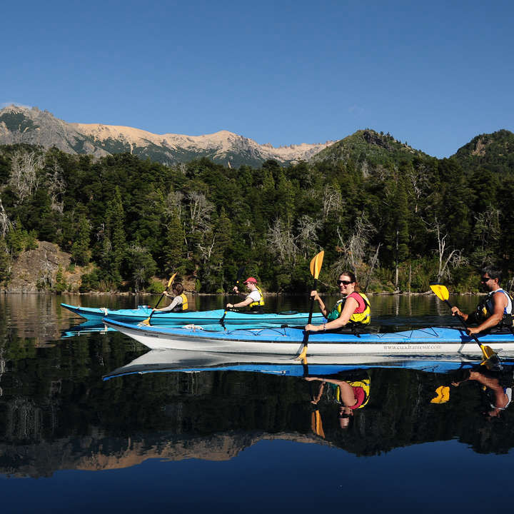 Luego de equiparlos los guías darán una charlas de seguridad, embarcamos comenzamos la navegación. El aproximado de navegación en el lago será de 2 hs., lo que incluye una parada en alguna de sus playas desoladas y paradisíacas para tomar un café, un te o un chocolate caliente con alfajores regionales. Luego de la parada volvemos a embarcar y regresamos a al punto de encuentro. Nos cambiamos y regresamos en unos 20 minutos hasta la ciudad.
