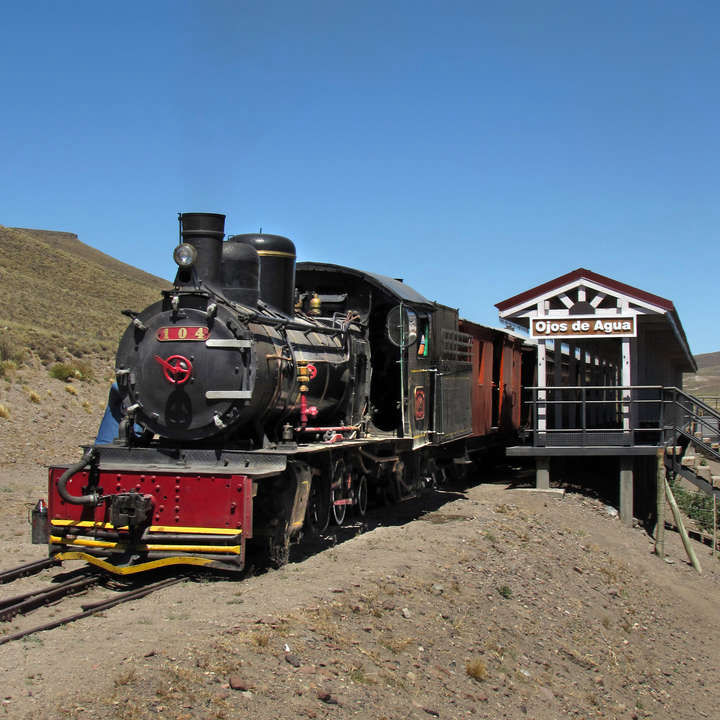 El servicio Turístico sale de la estación Ingeniero Jacobacci y recorre 43 kilómetros para llegar a la Estación Ojos de Agua.